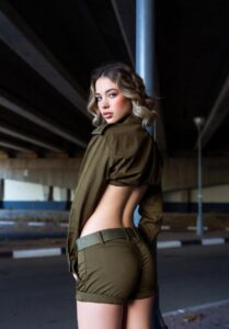 Oplev spændingen ved militærtøj, der møder sensualitet. Se den uventede afsløring, der får gnister til at flyve.