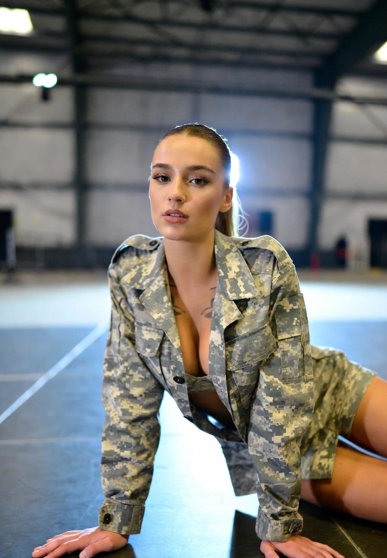 - A military babe in uniform‚ handling a weapon prop with confidence and precision․